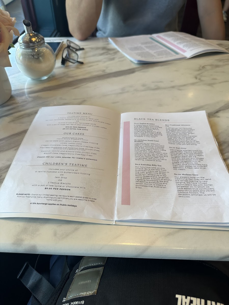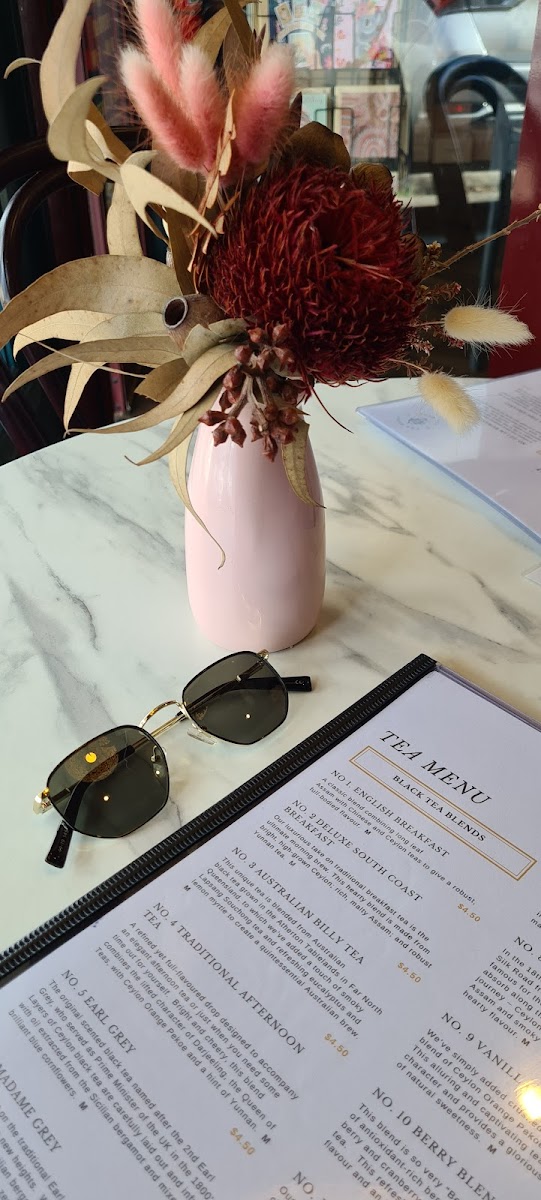 The menu at The Berry Tea Shop offers a delightful selection of cakes and tea blends, making it a perfect spot for dessert lovers. The cakes range from the tropical sweetness of Hummingbird Cake to the classic comfort of Carrot Cake With Lemon Cream Cheese Frosting, each one tempting in its own way. For those craving something zesty, the Lovely Lemon Cake is a refreshing option, while the Classic Chocolate Cake satisfies chocolate cravings. The Flourless Chocolate and Hazelnut Cake is a rich indulgence, perfect for those looking for something a little more decadent. To pair with these treats, the tea menu features carefully crafted blends like No.02 Deluxe South Coast, No.3 Australian Billy Tea, and No.06 Madame Grey, each offering a unique and aromatic experience. Whether you're in the mood for a sweet bite or a comforting cup of tea, the menu at The Berry Tea Shop is sure to satisfy.